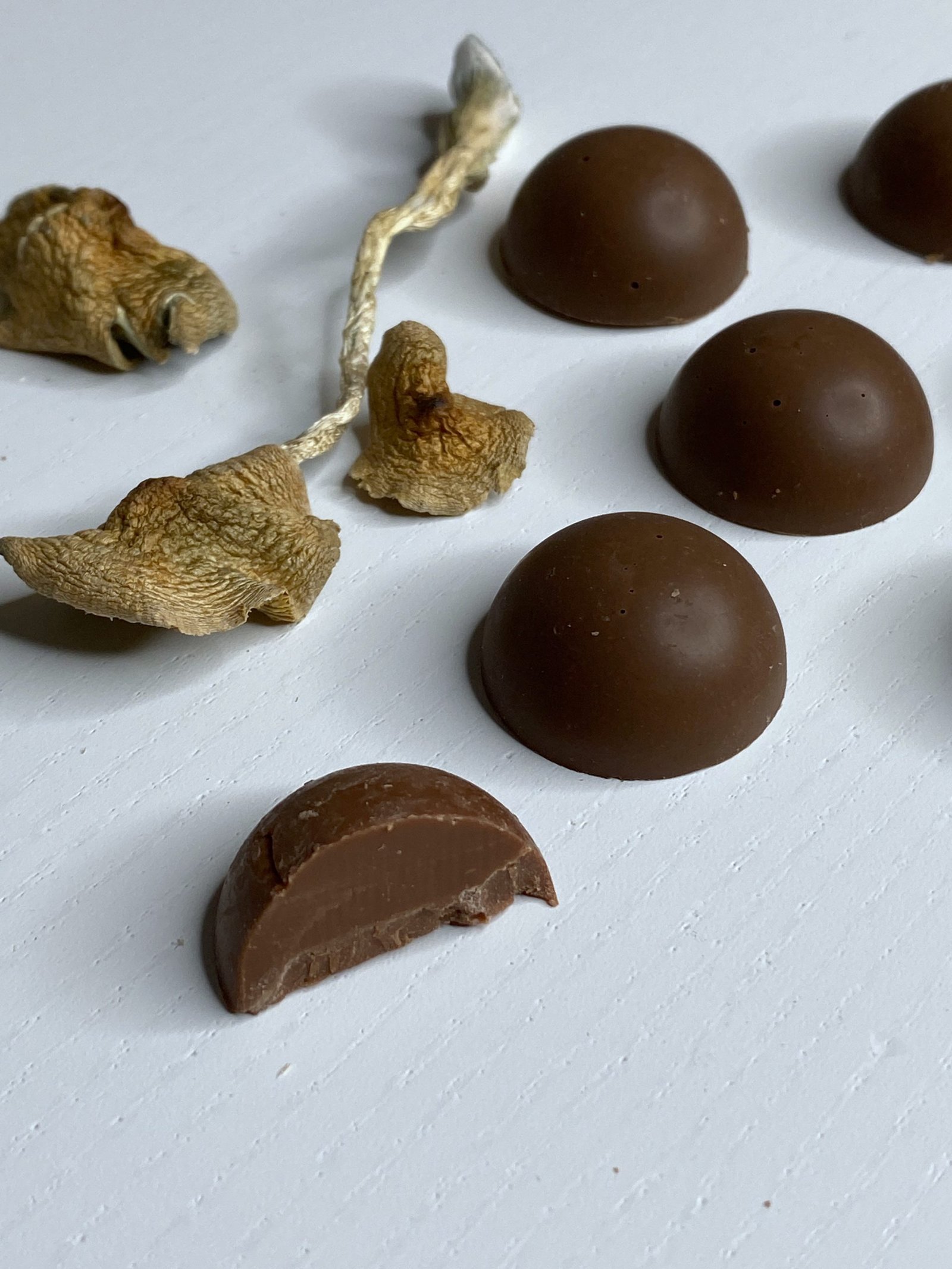 - Easily customize your dosage – each chocolate piece consists of 500mg (0.5 g) of ground magic mushrooms